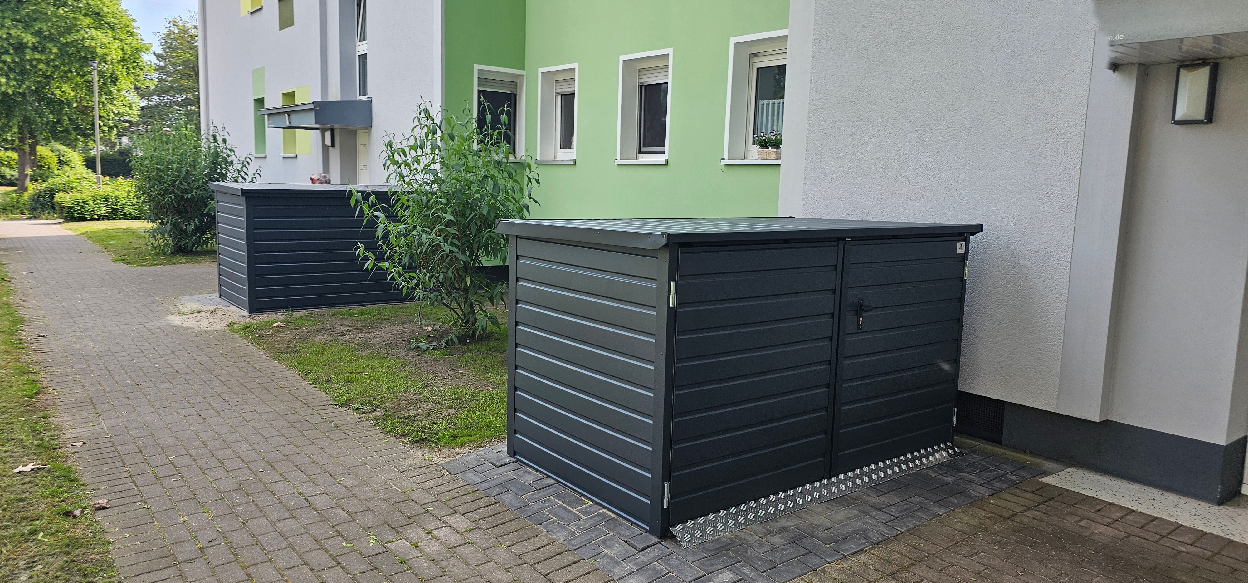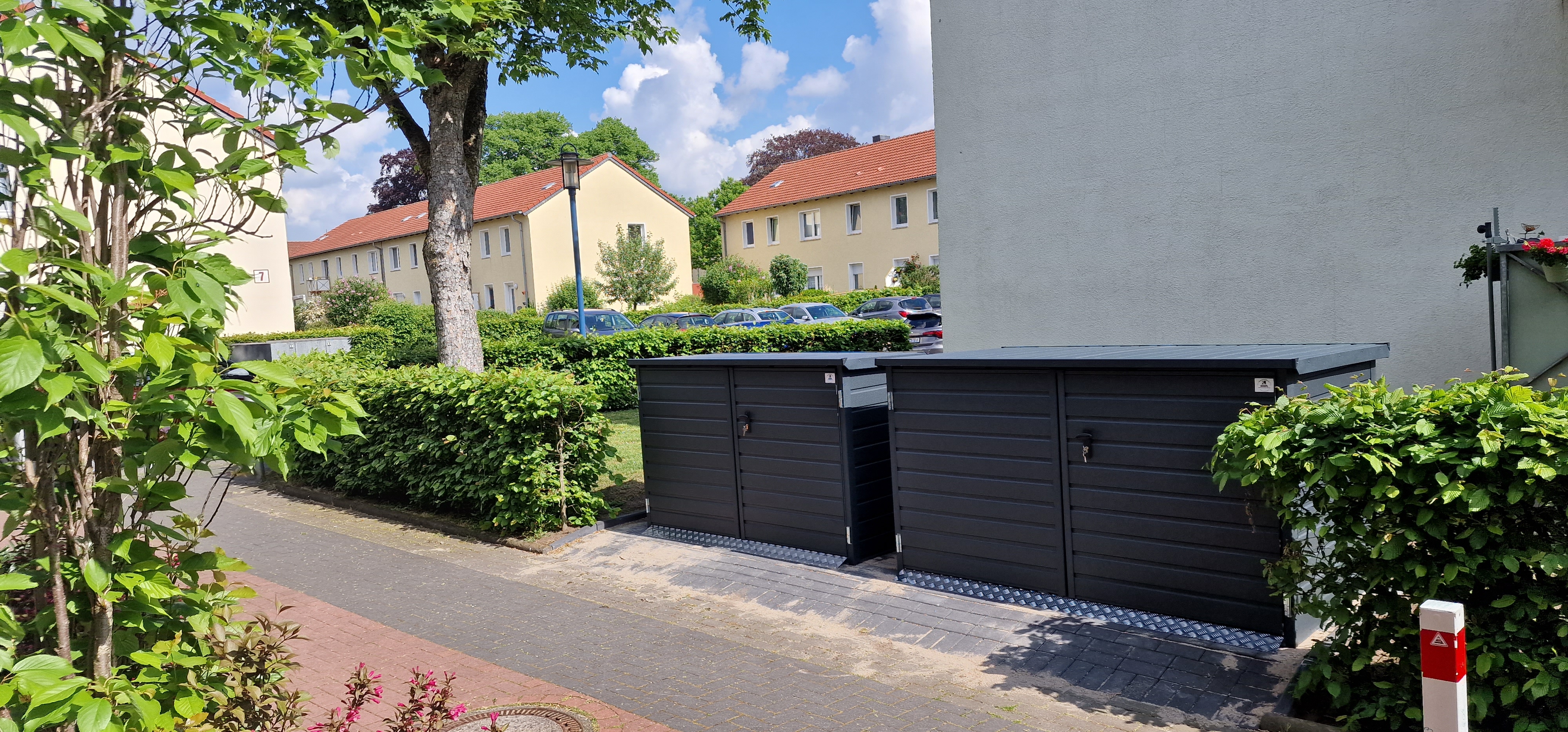 Fahrradgaragen M und XXL (auch als Rollator- und Rollstuhllgaragen) an verschiedenen Standorten in Voerde, Dinslaken und Duisburg